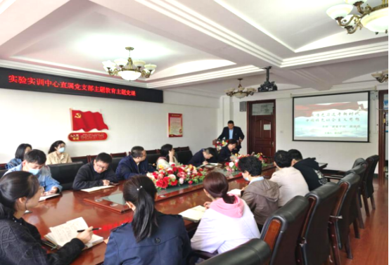 近日,实验实训中心党员领导干部为党员师生讲授学习贯彻习近平新时代中国特色社会主义思想主题教育专题党课。
