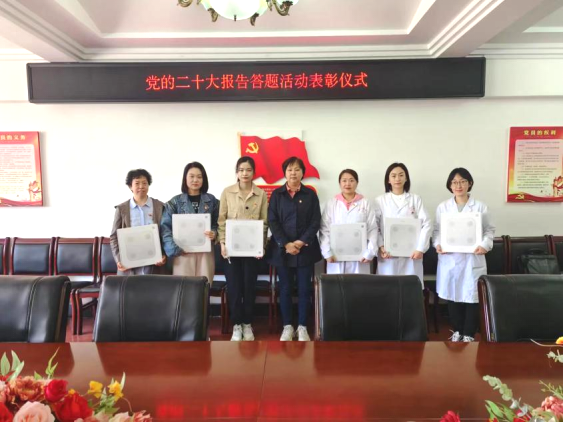 直属党支部书记马伟代表支部为在学习党的二十大报告答题活动中优秀答题代表进行颁奖。她要求党员教师要紧密地团结在以习近平同志为核心的党中央周围,高举中国特色社会主义伟大旗帜,落实立德树人根本任务,为奋力建设高质量教育体系、办好人民满意的教育而团结奋斗。
