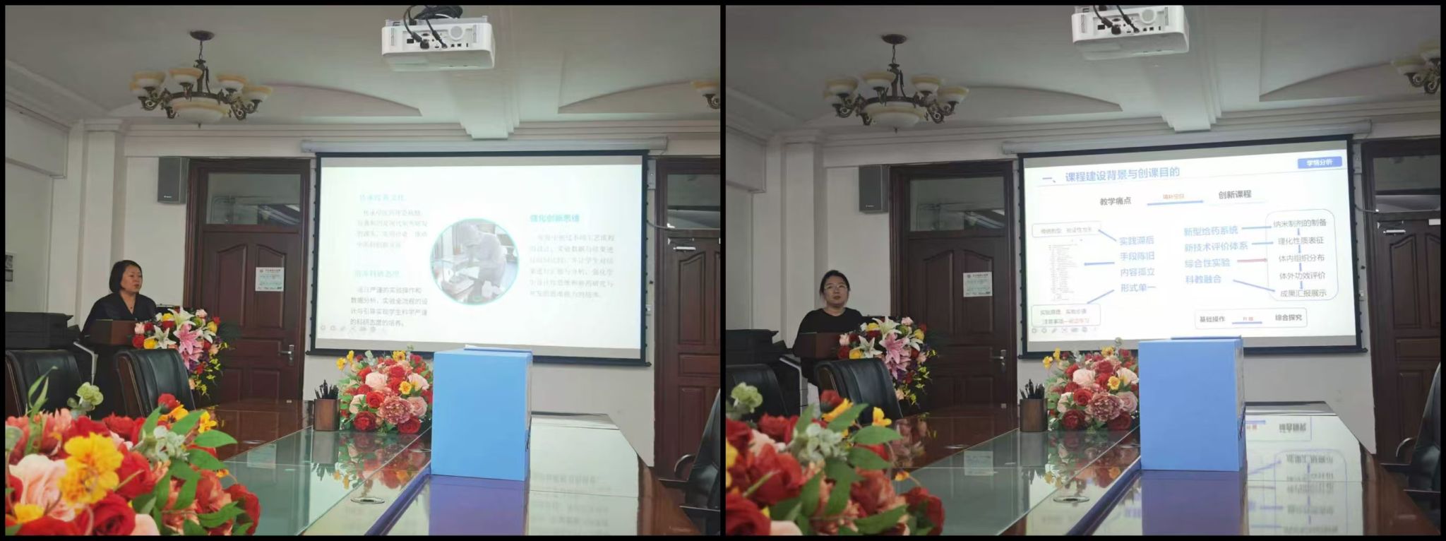 汇报会上,中心五位老师分别围绕《常用医学急救技术》《医学形态实验学》《创新制剂与功效评价学实验课程设计》《经典制剂与功效评价学》《中药分析与检验实验汇报》五门新创课程展开汇报。